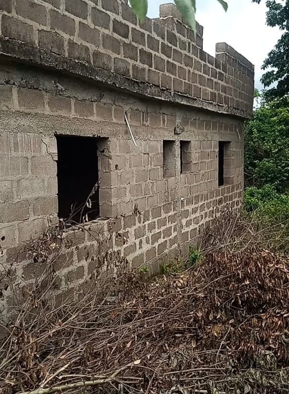 This is a land with uncompleted building located in Idiori, Abeokuta, around Oshiele Primary School. The area is calm and easy to access. The building is good for living or investment, and the buyer can finish it to their own taste.
